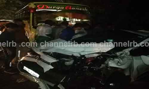 അമിത വേഗതയിലെത്തിയ ബസ് ട്രാവലര് കാറിലും ബൈക്കിലും ഇടിക്കുകയായിരുന്നു. ചൗക്കിയിലെ വീട്ടിലേക്ക് പോകും വഴിയാണ് അപകടമുണ്ടായത് .അപകടത്തെ തുടര്ന്ന് പരിക്ക് പറ്റിയ സ്ത്രീകളെ സ്വകാര്യ ആശുപത്രിയില് പ്രവേശിപ്പിച്ചിട്ടുണ്ട്.