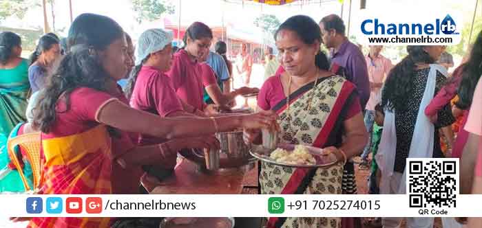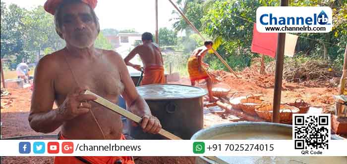 ലളിതം, സ്വാദിഷ്ടം, ഗംഭീരം… നല്ലരി ചോറും സാമ്പാറും അവിയലും അച്ചാറും പ്രഥമനും. ഭക്ഷണം കഴിക്കാൻ എത്തുന്നവർക്ക് കൂപ്പൺ ആവശ്യമില്ല. രാവിലെ അപ്പവും ഉച്ചയ്ക്കും രാത്രിയും ചോറും കറിയും. നാട്ടുകാരും അടുക്കള അണിയറക്കാരും വിഭവങ്ങളൊരുക്കാൻ കൈയ്യും മെയ്യും മറന്ന് രംഗത്തിറങ്ങി. പയത്തിലെ വിഷ്ണു ഭട്ടും അനുജൻ രാമചന്ദ്ര ഭട്ടുമാണ് പാചകത്തിന് നേതൃത്വം നൽകിയത്. ഒന്നാം ദിവസം 8 കിന്റെലും രണ്ടാം ദിവസം 12 കിന്റെലും മൂന്നാം ദിവസം 13 കിന്റെലും അരിയാണ് അടുപ്പിൽ വേവിച്ച് എടുത്തത്. ഏകദേശം മുപ്പത്തി അയ്യായിരത്തോളം ആളുകൾക്ക് ഭക്ഷണം വിളമ്പിയതായി മുഖ്യ പാചകക്കാർ പറഞ്ഞു.