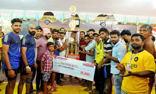 കാസര്‍കോട്: ചെന്നിക്കര ആര്‍ട്‌സ് ആന്‍ഡ് സ്‌പോര്‍ട് ക്ലബ് സംഘടിപ്പിച്ച അഹമ്മദ് അഫ്‌സല്‍ സ്മാരക ദക്ഷിണേന്ത്യന്‍ കബഡി ടൂര്‍ണമെന്റില്‍ പ്രതിഭ എരോല്‍ ജേതാക്കളായി. പ്രൊ കബഡി താരങ്ങളായ സചിന്‍ സുവര്‍ണ, പ്രപഞ്ചന്‍, അനൂപ് ആറാട്ട്ക്കടവ്, സര്‍വീസസിന്റെ ഗിരീഷ് മുല്ലച്ചേരി എന്നിവര്‍ അണിനിരന്ന പ്രതിഭ എരോല്‍ ചെന്നൈയില്‍ നിന്നുള്ള പ്രൊ കബഡി താരങ്ങള്‍ അണിനിരന്ന ശ്രീ ഗണേശ ബട്ടംപാറയെ തോല്‍പ്പിച്ചു. ജെ.കെ അക്കാദമി കാസര്‍കോട് മൂന്നും മൂഡബിദ്രി ആല്‍വാസ് നാലും സ്ഥാനം നേടി. കര്‍ണാടക, കേരളം, തമിഴ്‌നാട്, ഗുജറാത്ത്, പഞ്ചാബ് എന്നിവിടങ്ങളില്‍ നിന്നുള്ള പ്രൊകബഡി താരങ്ങള്‍ അണിനിരന്ന 16 ടീമുകള്‍ തമ്മിലുള്ള ഇന്‍വിറ്റേഷന്‍ ടൂര്‍ണമെന്റ് പേരാട്ടം തിങ്ങിനിറഞ്ഞ ആയിരങ്ങളെ ആവേശത്തിലാഴ്ത്തി.ജേതാക്കള്‍ക്ക് 50,000 രൂപയും ട്രോഫിയും നല്‍കി. റണ്ണേഴ്‌സിന് 30,000 രൂപയും ട്രോഫിയും മൂന്ന്, നാല് സ്ഥാനകാര്‍ക്ക് 10,000 രൂപ വീതവും ട്രോഫിയും സമ്മാനിച്ചു. ജഗദീഷ് കുമ്പള, വാര്‍ഡ് കൗണ്‍സിലര്‍ കെ ദിനേശന്‍, സന്ദീപ് ചെന്നിക്കര, നാരായണന്‍ ടോപ്‌സ്, മുഹമ്മദ് ഹാഷിം എന്നിവര്‍ സമ്മാനം നല്‍കി. അനില്‍ ചെന്നിക്കര അധ്യക്ഷനായി. വിനു ചെന്നിക്കര സ്വാഗതം പറഞ്ഞു. കബഡി താരങ്ങളായ ജഗദീഷ് കുമ്പള, സാഗര്‍ ബി കൃഷ്ണ, അനൂപ് ആറാട്ടുക്കടവ്, നിഷാന്ത് കിതിരക്കോട്, ഗിരീഷ് മുല്ലച്ചേരി, മാരത്തണ്‍ താരം രാഗേഷ് പെരുമ്പള എന്നിവരെ ആദരിച്ചു. ഗണേശ് നുള്ളിപ്പാടി, ഹാരിസ് നുള്ളിപ്പാടി, രാമന്‍ ചെന്നിക്കര, ബാലന്‍ ചെന്നിക്കര, ബി നാരായണന്‍, ഗിരി നാരായണന്‍ എന്നിവര്‍ ഉപഹാരം നല്‍കി.