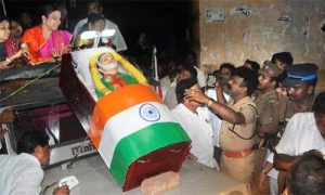 ചെന്നൈ: ആര്.കെ നഗറില് തെരഞ്ഞെടുപ്പ് പ്രചരണത്തിനായി ജയലളിതയുടെ മൃതദേഹവും ഉപയോഗിക്കുന്നു. പണം കൊടുത്ത് വോട്ടര്മാരെ സ്വാധീനിക്കുന്ന വാര്ത്ത വന്നതിന് പിന്നാലെയാണ് ഈ ഞെട്ടിക്കുന്ന വാര്ത്തയും വന്നിരിക്കുന്നത്. ജയലളിതയുടെ മരണത്തിന് ശേഷം അണ്ണാ ഡി.എം.കെ പനീര്ശെല്വത്തിന്റെയും ശശികലയുടെ പക്ഷമായി രണ്ടായി പിളര്ന്നു. ഇരുവിഭാഗവും തങ്ങളാണ് ജയലളിതയുടെ പിന്ഗാമിയെന്ന് തെളിയിക്കാനുള്ള കഠിന ശ്രമം നടക്കുന്നതിനിടെയാണ് ജയലളിതയുടെ മൃതദേഹവുമായി പ്രചരണം നടത്തുന്ന വാര്ത്ത പുറത്ത് വന്നത്.