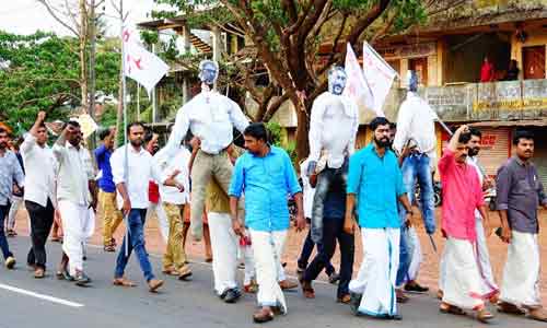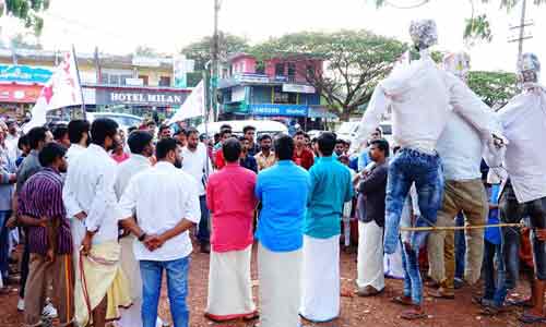ആസിഫയുടെ കൊലപാതകത്തില് പ്രതിഷേധിച്ച് ഡിവൈ.എഫ്.ഐ പ്രതികളെ പ്രതികാത്മകമായി തൂക്കിലേറ്റി