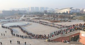 ചൈന: ഈ കാണുന്നത് ബീവറേജസ് കോര്പ്പറേഷന്റെ ചില്ലറ വില്പനശാലയ്ക്കു മുന്നിലെയോ, ബാങ്കുകള്ക്കു മുന്നിലെയോ ക്യൂ ദൃശ്യമല്ല. പിന്നെയോ!… അതില് നിന്നെല്ലാം വ്യത്യസ്തമായ ഒരു കൂറ്റന് വരിയുടെ കൗതുകമുണര്ത്തുന്ന ദൃശ്യമാണ് ഇപ്പോള് സാമൂഹ്യമാധ്യമങ്ങളില് വ്യാപകമായി പ്രചരിക്കുന്നത്. ഈ ക്യൂ എന്തിനാണെന്നറിഞ്ഞാല് എല്ലാവരും അത്ഭുതപ്പെടും.