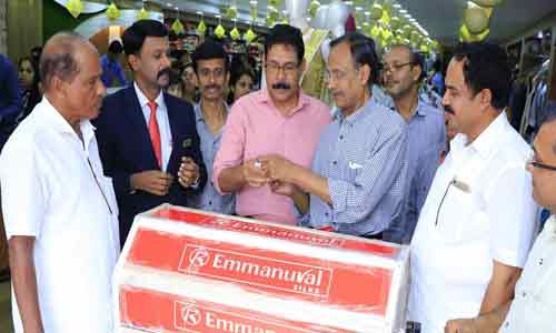 കാഞ്ഞങ്ങാട്: ഇമ്മാനുവല്‍ സില്‍ക്‌സില്‍ ഉപഭോക്താക്കള്‍ക്കായി ഏര്‍പ്പെടുത്തിയ ‘പാട്ടിനൊപ്പും പത്തുപവന്‍’ ഓഫറിന്റെ സമ്മാനങ്ങള്‍ വിതരണം ചെയ്തു. ഷോറൂമില്‍ വെച്ച് നടന്ന ചടങ്ങില്‍ കേരളം വ്യാപാരി വ്യവസായി ഏകോപന സമിതി കാസര്‍കോട് ജില്ലാപ്രസിഡണ്ട് അഹമ്മദ് ഷെരീഫ് സമ്മാന വിതരണം നടത്തി.വ്യാപാരി വ്യവസായി കാഞ്ഞങ്ങാട് യൂനിറ്റ് പ്രസിഡണ്ട് അഹമ്മദ് ഹാജി മുഖ്യാഥിതിയായിരുന്നു. ഓണത്തോടനുബന്ധിച്ചുള്ള 48 മണിക്കുര്‍ നറുക്കെടുപ്പ് വ്യാപാരി വ്യവസായി ജനറല്‍ സെക്രട്ടറി പീറ്റര്‍ നിര്‍വ്വഹിച്ചു. ചടങ്ങില്‍ പത്തു ഗോള്‍ഡ് കോയിന്‍ നേടിയവരുടെ സമ്മാനങ്ങളും വിതരണം ചെയ്തു. പാര്‍ട്ണര്‍ സക്കറിയ, ജനറല്‍ മാനേജര്‍ ഇബ്രഹിം പി.ആര്‍.ഒ നാരായണന്‍ സംബന്ധിച്ചു.പത്തു പവന്‍ സ്വര്‍ണ സമ്മാനത്തിന് അര്‍ഹത നേടിയത് ടി.വി ചിന്താമണി (ഉദുമ -കൂപ്പണ്‍ നമ്പര്‍ -13800) ആയിരുന്നു. ഓരോ 48 മണിക്കൂറിലും ഒരു പവന്‍ സ്വര്‍ണം നറുക്കെടുപ്പിലൂടെ അര്‍ഹരായവര്‍; ജുഹാന ജെസ്ലിന്‍ കെ (നീലേശ്വരം കൂപ്പണ്‍ നമ്പര്‍ 2669), ലളിത നാരായണന്‍ (കാഞ്ഞങ്ങാട് കൂപ്പണ്‍ നമ്പര്‍2772), ശ്രീഹരി( വെള്ളരിക്കുണ്ട് കൂപ്പണ്‍ നമ്പര്‍ 22082), രമകുമാര്‍ (തൈകടപ്പുറം കൂപ്പണ്‍ നമ്പര്‍ 12367).ഇമ്മാനുവല്‍ സില്‍ക്‌സില്‍ ഓണം ബക്രീദ് ഷോപ്പിങ് ഫെസ്റ്റിവലില്‍ ഓരോ 48 മണിക്കൂറിലും ഒരു പവന്‍ സ്വര്‍ണ സമ്മാനമാണ് ഉപഭാക്താക്കള്‍ക്കായി ഒരുക്കിയിരിക്കുന്നത്. ഒപ്പം ഏറ്റവും ഗുണമേന്മയുള്ള വസ്ത്രങ്ങള്‍ ഏറ്റവും കുറഞ്ഞ വിലയില്‍ ലഭ്യമാക്കുക എന്ന ഉദ്ദേശത്തോടെ ഓണം ഇക്കണോമിക് ബസാറും പ്രവര്‍ത്തിച്ചുവരുന്നു. സാരികള്‍ ലേഡീസ് വെയറുകള്‍ കിഡ്‌സ്വെയറുകള്‍ എന്നിവയുടെ വില 199 രൂപയില്‍ ആരംഭിക്കുന്നു. ജെന്റ്‌സ് വെയറുകള്‍ 299 രൂപയില്‍ ആരംഭിക്കുന്നു.