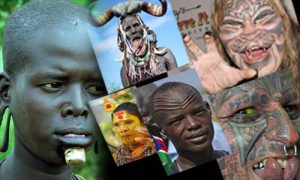 ആഫ്രിക്ക: സംസ്കാരത്തിന്റെം പാരമ്പര്യത്തിന്റെയും ചിലപ്പോഴൊക്കെ ഫാഷന്റെയും പേരില് ശരീരത്തില് ചില മാറ്റങ്ങള് വരുത്തി ജീവിക്കുന്നവര് നമുക്കെന്നും അത്ഭുതമാണ്. ഇത്തരം മനുഷ്യരെ തെല്ലു ഭയത്തോടയും അത്ഭുതത്തോടെയുമാണ് നമ്മള് നോക്കി കാണുന്നത്. ഇതാ ചില മനുഷ്യ കോലങ്ങള്…