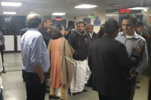 ഇതിനിടെ കോണ്ഗ്രസ് അധ്യക്ഷ സോണിയാഗാന്ധി, ഉപാധ്യക്ഷന് രാഹുല്ഗാന്ധി തുടങ്ങിയവര് ആശുപത്രിയില് എത്തി. അവര് ആശുപത്രി ഉദ്യോഗസ്ഥരുമായി ചര്ച്ച നടത്തി. എന്നാല് ഇവര്ക്കും സന്ദര്ശനത്തിനുള്ള അനുമതി നിഷേധിച്ചതോടെ പ്രതിഷേധം ശക്തമായി.