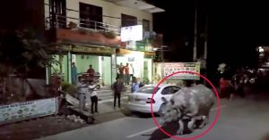 നേപ്പാള്: നേപ്പാളിലെതെരുവിലൂടെ നഗരം ചുറ്റാനിറങ്ങിയ കാണ്ടാമൃഗം ഏവര്ക്കും കൗതുകമാവുന്നു. നേപ്പാളിലെ ചെറു പട്ടണമായ സുവാരയിലൂടെ രാത്രിയില് ചുറ്റാനിറങ്ങിയതാണ് കക്ഷി. സുവാരയ്ക്കടുത്തുള്ള ചിത്വാന് നാഷണല് പാര്ക്കില് നിന്നും പുറത്തെത്തിയതാവാം ഇതെന്നാണ് കരുതപ്പെടുന്നത്. റോഡിനിരുവശവും ആളുകള് കൂടി നില്ക്കുന്നുണ്ടെങ്കിലും അതൊന്നും ശ്രദ്ധിക്കാതെയായിരുന്നു കാണ്ടാമൃഗത്തിന്റെ പോക്ക്.