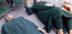 ബെയ്ജിങ്: വിജയകരമായി നടന്ന ഓപ്പറേഷന് ശേഷം ഒരു ചെറുചിരിയുമായി പുറത്തേക്ക് വരുന്ന ഡോക്ടര്മാരെയാണ് നാം കണ്ടിട്ടുള്ളത്. എന്നാല് ഇവിടെ ഓപ്പറേഷന് ശേഷം ഡോക്ടര്മാര് കുഴഞ്ഞുവീണ സംഭവം നമുക്കൊരു പുതുമയുള്ള വാര്ത്തയാണ്.