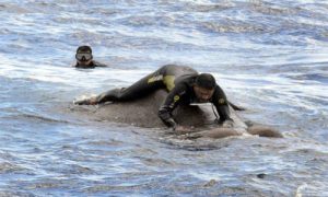 കൊളംബോ: കടലിലൂടെ ഒഴുകിപ്പോയ ആനയെ ശ്രീലങ്കന് നാവിക സേന രക്ഷിച്ചു. ശ്രീലങ്കയുടെ വടക്കുകിഴക്കന് തീരത്തുനിന്നാണ് ആന അടിയൊഴുക്കില്പ്പെട്ട് ഉള്ക്കടലിലേക്ക് ഒഴുകിപ്പോയത്. തീരത്ത് നിന്ന് പത്തുമൈലോളം ഉള്ളിലേക്ക് ഒഴുകിയ ആനയെ രക്ഷിക്കാന് ഒടുവില് നാവികസേനയെത്തുകയായിരുന്നു,. നാവികസേനയുടെ മണിക്കൂറുകള് നീണ്ട ശ്രമത്തിനൊടുവിലാണ് രക്ഷപ്പെടുത്തിയത്. ശ്രീലങ്കന് നാവികസേനയുടെ പട്രോളിംഗിനിടെയാണ് കടലില് മുങ്ങിത്താഴുന്ന ആനയെ കണ്ടത്. കോക്കിലെ വനമേഖലയില് വനത്തിന് നടുവിലൂടെ കടലിലേക്ക് ചെറിയ ഉപ്പുതടാകമുണ്ട്. ഈ തടാകം കടന്ന് അപ്പുറത്തെത്താന് ദീര്ഘതൂരം തടാക തീരത്തിലൂടെ മൃഗങ്ങള്ക്ക് നടക്കേണ്ടിവരും. എന്നാല് ആനകള് പലപ്പോഴും തടാകം നീന്തി മറുകരയിലെത്താറുണ്ട്.