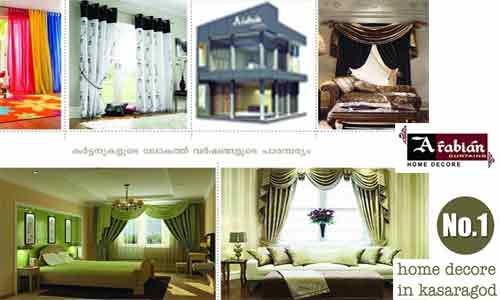 കാഴ്ചയിൽ കൊതിയൂറുന്ന പുതിയ കാലത്തിൻ്റെ ഗൃഹാലങ്കാരങ്ങൾക്ക് നിറക്കൂട്ടൊരുക്കുന്നതിന് കാസർകോട് നുള്ളിപ്പാടി അറഫാ സെൻ്റെറിലും ഉപ്പള യു.കെ നാഷണൽ ടവറിലും രണ്ട് പ്രധാന ഷോറൂമുകളിലായി പ്രവർത്തിക്കുന്ന അറേബ്യൻ കർട്ടൻസ് ഹോം ഡെക്കർ ആവശ്യക്കാർക്ക് കർട്ടനുകൾ തിരഞ്ഞെടുക്കാൻ വിശാലമായ സൗകര്യവും ഏർപ്പെടുത്തിയിട്ടുണ്ട്.