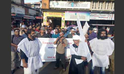 കാസർകോട്: കന്യാസ്ത്രീകളുടെ സമരത്തിന് ഐക്യദാർഢ്യവുമായി നാടക് വ്യത്യസ്തമായ തിയറ്റർ മാർച്ച് സംഘടിപ്പിച്ചു. മതപൗരോഹിത്യത്തിൻ്റെ അടിച്ചമർത്തലുകൾക്കെതിരെ ഓരോ സ്ത്രീയും നീതിക്കുവേണ്ടി