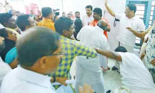 സ്റ്റാന്ഡിങ് കമ്മിറ്റി ചെയര്പേഴ്സണ് ഷാമിലാ അനിമോന് യു.ഡി.എഫ്. പാര്ലമെന്ററി പാര്ട്ടി നേതാവിനെതിരെ പരാമര്ശം നടത്തിയതോടെയാണ് ബഹളം ആരംഭിച്ചത്. ബഹളത്തിനിടയില് യു.ഡി.എഫ്. അംഗം ഷാനവാസിനു നേരേയുണ്ടായ കയ്യേറ്റ ശ്രമത്തോടെയാണ് കയ്യാങ്കളി തുടങ്ങിയത്. സംഭവത്തില് അജയനു പുറമേ എല്.ഡി.എഫിലെ വൈസ് ചെയര്പേഴ്സണ് ആര്.ഗിരിജ, അബ്ദുള്മനാഫ്, ജലീല് എസ്.പെരുമ്പളത്ത്, കെ.കെ.അനില്കുമാര്, പി.ശശികല യു.ഡി.എഫിലെ ഷാനവാസ്, ഷീജാ നാസര് എന്നിവര്ക്കും പരിക്കേറ്റിട്ടുണ്ട്.