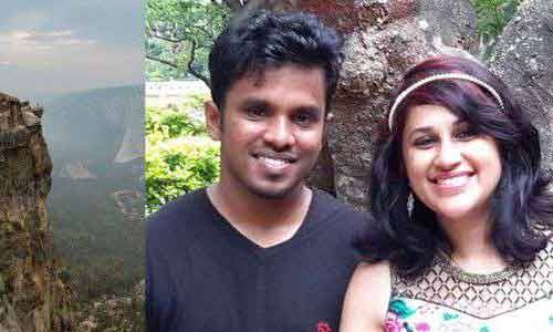 ചെങ്ങന്നൂരിലെ എന്ജിനിയറിംഗ് കോളജില് സഹപാഠികളായിരുന്ന ഇരുവരും പ്രണയിച്ച് വിവാഹം കഴിച്ചവരാണ്. ഇരുവരും ട്രക്കിംഗ് നടത്തുന്നതിനിടയില് മലമുകളില് നിന്ന് സെല്ഫി എടുക്കുന്നതിനിടെ കാല്വഴുതി കൊക്കയിലേക്ക് വീണത്. മൃതദേഹത്തില് നിന്നും ലഭിച്ച ഡ്രൈവിംഗ് ലൈസന്സില് നിന്നാണ് മരിച്ചവര് ഇന്ത്യക്കാരാണെന്ന് തിരിച്ചറിഞ്ഞത്. സോഫ്ട്വേർ എന്ജിനിയറായ വിഷ്ണു ബുധനാഴ്ച ഓഫീസിലെത്തിയിരുന്നില്ല. സഹപ്രവര്ത്തകര് അന്വേഷണം നടത്തുന്നതിനിടയിലാണ് മരണവിവരം അറിഞ്ഞത്.