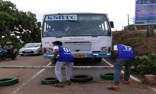 ഉപ്പള കുക്കാര് ജനപ്രിയയില് മംഗളൂരുവില് നിന്നും കാസര്കേട്ടേക്ക് വരികയായി കെ.എസ്.ആര്.ടി.സി.ബസ് നാലംഗ സംഘം കല്ലെറിഞ്ഞ് തകര്ത്തു. തിങ്കളാഴ്ച ഹര്ത്താലാണെന്ന തരത്തില് വ്യാജ പ്രചരണം നടത്തിയ 25 പേരെ അറസ്റ്റ് ചെയ്തതായി ജില്ലാ പോലീസ് ചീഫ് കെ ജി സൈമണ് പറഞ്ഞു.