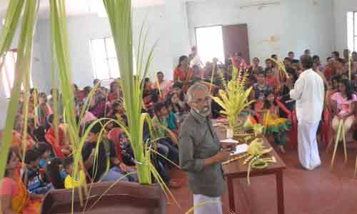 മണ്ണിനെ മലിനമാക്കുന്ന കളിപ്പാട്ടങ്ങള്ക്ക് പകരം പ്രകൃതിജന്യമായ കുരുത്തോല കൊണ്ട് കരകൗശല ഉല്പന്നങ്ങളും മത്സ്യങ്ങളും ഞണ്ടകളും തേരും കുതിരയും ഉണ്ടാക്കിയപ്പോള് മുതിര്ന്നവര്ക്ക് പോലും നവ്യാനുഭവമായി. വെള്ളോറയിലെ തെയ്യം കലാകാരന് രവിപണിക്കരാണ് കുരുത്തോലയില് അത്ഭുതങ്ങള് തീര്ത്തത്. തെയ്യം കലയായ തെയ്യച്ചമയങ്ങള്ക്ക് വ്യാപകമായി ഉപയോഗിക്കുന്ന തിരിയോല കൊണ്ട് സ്വീകരണമുറിയെ അലങ്കരിക്കാന് കൃത്രിമകളിക്കോപ്പുകളെ വെല്ലുന്ന കൗതുകവസ്തുക്കള് നിമിഷ നേരം കൊണ്ട് ചില്ലിക്കാശ് ചെലവില്ലാതെ നിര്മിക്കാന് നടത്തിയ പരിശീലനം സത്രീകള്ക്കും കുട്ടികള്ക്കും മറക്കാനാവാത്ത അനുഭവമായി.