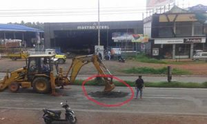 മഴ വന്നപ്പോള് മണിക്കൂറുകള്ക്കകം റോഡിലെ അടച്ച കുഴിയുടെ ഇപ്പോഴത്തെ സ്ഥിതി