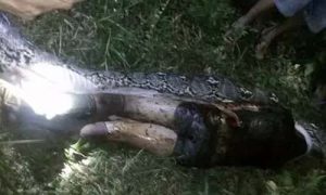 ഇന്ഡോനേഷ്യ: ജോലിക്കായി കൃഷിയിടത്തിലേക്ക് പോയ 25 കാരനായ അക്ബര് സലൂബിറോയെ കാണാതായതിനെ തുടര്ന്ന് നടത്തിയ അന്വേഷണത്തിലാണ് കുറ്റിക്കാട്ടിനുള്ളില് ഒരു വമ്പന് പെരുമ്പാമ്പിനെ കണ്ടത്. വീര്ത്ത വയറുമായി ഒന്നങ്ങാന് പോലും പറ്റാതെ കിടക്കുന്ന പെരുമ്പാമ്പിന്റെ വയറ് കുത്തിക്കീറി പരിശോധിച്ചപ്പോഴാണ് വയറിനുള്ളില് അക്ബറിനെ കണ്ടത്. ഇന്ഡോനേഷ്യയിലെ സുലവേസിയിലാണ് സംഭവം. പാമ്പിന്റെ വയറ്റില് അക്ബര് ധരിച്ചിരുന്നതിപോലുള്ള ബൂട്ടിന്റെ വ്യക്തമായ അടയാളം മുഴച്ചുനിന്നിരുന്നു. ഇത് കണ്ട് സംശയം തോന്നിയ നാട്ടുകാര് പാമ്പിനെ പിടികൂടി കൊലപ്പെടുത്തി വയറു കീറുകയായിരുന്നു.
