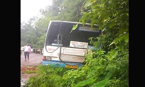 കാഞ്ഞങ്ങാട്ട് നിന്ന് എളേരിത്തട്ടിലേക്ക് പോവുകയായിരുന്ന കെ.എസ്.ആര്.ടി.സി. ബസാണ് അപകടത്തില്പെട്ടത്. ബ്രേക്ക് പൊട്ടിയതോടെ ബസിന്റെ നിയന്ത്രണം വിടുകയായിരുന്നു. വനിതാ കണ്ടക്ടര് സുഭാഷിണിക്ക് പരിക്കേറ്റു.