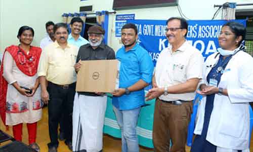 കെ.ജി.എം.ഒ.എ കാസറഗോഡ് ജില്ലാ ഘടകം ഹാഷിറിന് ലാപ്ടോപ്പ് സമ്മാനിച്ചു