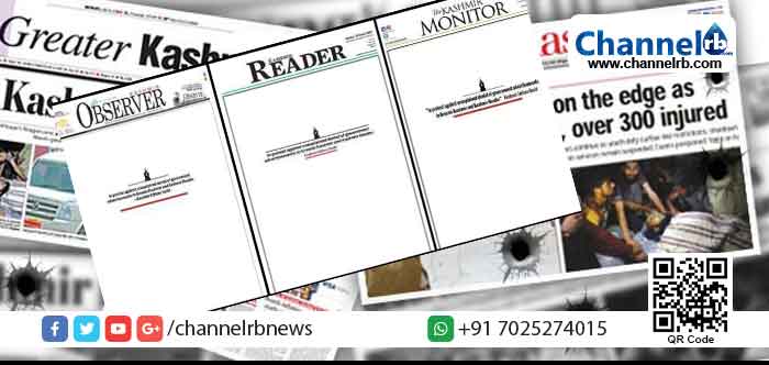 കാശ്മീർ: കേന്ദ്ര സർക്കാർ തങ്ങൾക്ക് പരസ്യം നിഷേധിച്ചതിൽ പ്രതിഷേധവുമായി ജമ്മു കാശ്മീരിലെ പ്രമുഖ ദിനപത്രങ്ങൾ. പത്രങ്ങളുടെ ഒന്നാം പേജ് ഒഴിച്ചിട്ടാണ് പ്രതിഷേധം അറിയിച്ചത്. കാശ്മീരിലെ പ്രമുഖ പത്രങ്ങളായ ഗ്രേറ്റർ കാശ്മീർ, കാശ്മീർ റീഡർ എന്നി ദിനപത്രങ്ങൾക്കുള്ള കേന്ദ്ര സർക്കാർ പരസ്യങ്ങൾ അകാരണമായി പിൻവലിച്ചു എന്ന് ആരോപിച്ചാണ് പത്രങ്ങൾ ഒന്നാം പേജ് ഒഴിച്ചിട്ട് മാർച്ച് ഇന്നത്തെ പത്രങ്ങൾ പുറത്തിറക്കിയത്. സംഭവത്തിൽ പ്രസ് കൗൺസിൽ ഓഫ് ഇന്ത്യ, എഡിറ്റേഴ്സ് ഗിൽഡ് ഉൾപ്പെടെ ഇടപെടണമെന്ന് കാശ്മീർ എഡിറ്റേറ്സ് ഗിൽഡ് ആവശ്യപ്പെട്ടതിന് പിറകെയാണ് പുതിയ പ്രതിഷേധവുമായി പത്രങ്ങൾ രംഗത്തെത്തിയത്.