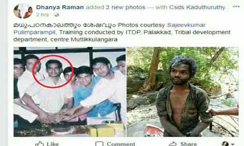 കൊല്ലപ്പെട്ട മധുവിന്റെ വിദ്യാര്ഥി ജീവിതകാലത്തെന്ന പേരില് സോഷ്യല്മീഡിയയില് വ്യാജ ചിത്രം പ്രചരിപ്പിച്ചു; സംഭവം വിവാദമായതോടെ സാമൂഹിക പ്രവര്ത്തക പോസ്റ്റ് പിന്വലിച്ചു