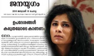 തിരുവനന്തപുരം: ലോക കേരളസഭയില് പങ്കെടുക്കാനെത്തിയ മുഖ്യമന്ത്രിയുടെ സാമ്പത്തിക ഉപദേഷ്ടാവ് ഡോ. ഗീതാഗോപിനാഥ് ചില മാധ്യമങ്ങള്ക്ക് നല്കിയ സൂചനകളില് ആശങ്ക പ്രകടിപ്പിച്ച് സി.പി.ഐ മുഖപത്രമായ ജനയുഗം. അനൗപചാരിക സംഭാഷണത്തിലെ സൂചനകള് കേരള സര്ക്കാരിന്റെ സാമ്പത്തിക നയങ്ങളില് മാറ്റം വരുത്തേണ്ടി വരും. അവരുടെ മുന്നറിയിപ്പ് തികച്ചും ആശങ്കാജനകമാണെന്നാണ് ജനയുഗം പറയുന്നത്. സംസ്ഥാനത്തിന്റെ സാമ്പത്തിക വളര്ച്ചയിലും വികാസത്തിലും ഗീതാഗോപിനാഥ് പ്രകടിപ്പിക്കുന്ന താല്പര്യവും വിദേശ നിക്ഷേപം കൊണ്ടുവരുന്നതില് കാണിക്കുന്ന ഉത്സാഹവും ശ്ലാഘനീയമാണെങ്കിലും ചെലവുചുരുക്കല് സംബന്ധിച്ച് പ്രകടിപ്പിക്കുന്ന ചില നിലപാടുകളാണ് ജനയുഗം ആശങ്ക പ്രകടിപ്പിക്കുന്നത്. സാമ്പത്തിക രംഗത്ത് നടപ്പാക്കേണ്ട പരിഷ്കാര നടപടികളെ മുഖ്യമന്ത്രിയും ഇടതുപക്ഷ ജനാധിപത്യ മുന്നണിയും കരുതലോടെയേ സമീപിക്കാവൂ എന്നാണ് പത്രത്തിന്റെ മുഖപ്രസംഗത്തില് പറയുന്നത്.