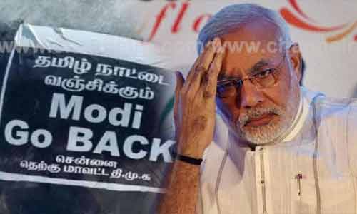 അതിന് ശേഷം ഇപ്പോൾ മോദി മധുരയിലെ എത്തുമ്പോൾ പ്രതിഷേധം കൂടുകയാണുണ്ടായത്. ‘ഗോ ബാക്ക് മോദി’ എന്ന ഹാഷ് ടാഗില് പതിനായിരക്കണക്കിന് ട്വീറ്റുകളും ഫേസ്ബുക്ക് പോസ്റ്റുകളുമാണ് പ്രചരിക്കുന്നത്. ട്വിറ്റര് ട്രെന്ഡിംഗില് ഏറ്റവും മുന്നിലും ഈ ഹാഷ് ടാഗ് തന്നെ. തമിഴ്നാടിന്റെ ഭൂപടത്തില് പെരിയാറിന്റെ ചിത്രത്തോടുകൂടിയ കാര്ട്ടൂണോടെയാണ് പ്രതിഷേധപോസ്റ്റുകള് പ്രചരിക്കുന്നത്. തമിഴ്നാട്ടിലെ കര്ഷകന് മോദിയെ നാട്ടില് നിന്ന് ചവിട്ടിപ്പുറത്താക്കുന്ന കാര്ട്ടൂണും ട്രെന്ഡിംഗാണ്. ഇതിനെതിരെ ബി.ജെ.പി പ്രവർത്തകർ രംഗത്ത് വന്നെങ്കിലും ഗുണമുണ്ടായില്ല. ‘ടി എന് വെല്കംസ് മോദി’ എന്ന ഹാഷ് ടാഗാണ് അവർ മുന്നോട്ടിവെച്ചത്. അത് അത്രയ്ക്ക് ഏറ്റില്ല.