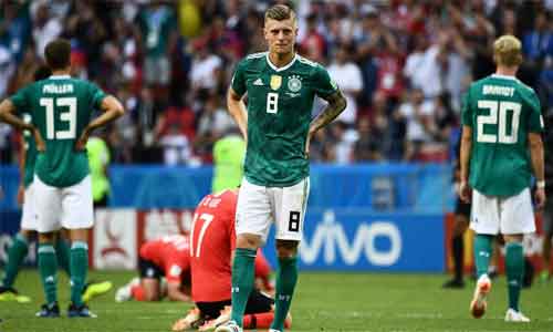കസാന്: മുന് ലോകചാംപ്യന്മാരായ ജര്മനിയെ അട്ടിമറിച്ച് ദക്ഷിണ കൊറിയ. 2014 ലോകകപ്പിലെ ചാംപ്യന്മാരായ ജര്മനി കൊറിയയോട് രണ്ടു ഗോളിന് തോറ്റ് ഗ്രൂപ്പ് ഘട്ടത്തില് തന്നെ പുറത്തായി. ഇന്ജുറി ടൈമില് കിം യോങ് ഗ്യോനിലൂടെ ആദ്യ ഗോള് നേടിയ ദക്ഷിണ കൊറിയ നാലു മിനിറ്റുകള്ക്കു ശേഷം ഹ്യൂങ് മിന് സണ്ണിലൂടെ രണ്ടാമത്തെ ഗോളും നേടി. മൂന്നു മല്സരങ്ങളില് രണ്ടും തോറ്റ് ഗ്രൂപ്പില് അവസാനസ്ഥാനക്കാരായാണ് ജര്മനിയുടെ മടക്കം.