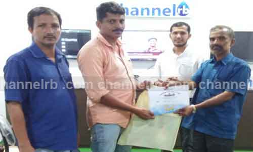 നുള്ളിപ്പാടിയിലെ ചാനല് ആര്.ബി സ്റ്റുഡിയോവില് വച്ച് നടന്ന ചടങ്ങില് കാസര്കോട് ജില്ലാ ഇന്ഫര്മേഷന് ഓഫീസര് ഇ.വി സുഗതന് സമ്മാനം വിതരണം ചെയ്തു. ചാനല് ആര്.ബി സി.ഇ.ഒ മുഹമ്മദ് ഹാരിസ്, സീനിയര് റിപോര്ട്ടര് ദേവിദാസ്, ഹസന് സംബന്ധിച്ചു.