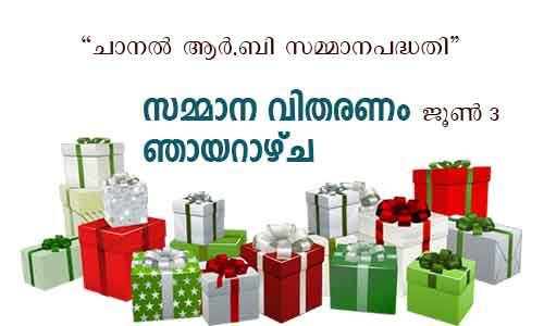 ചാനല് ആര്.ബി ഡോട്ട് കോം വായനക്കാര്ക്കായി നടത്തിയ സമ്മാന പദ്ധതിയിലെ വിജയികള്ക്കുള്ള സമ്മാന വിതരണം നാളെ