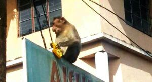ചെത്ത്കള്ള് കുടിച്ച് പൂസായി ഒരു വാനരന്; പരാതിയുമായി നാട്ടുകാര് രംഗത്ത്