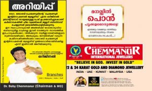 തൃശൂര്: ഡോ. ബോബി ചെമ്മണൂരിന്റെ ചെമ്മണൂര് ഇന്റര്നാഷണല് ജ്വല്ലേഴ്സ് എന്ന ഒറിജിനല് ബ്രാന്റിനോട് സാദൃശ്യമുള്ള പേര് ഉപയോഗിച്ചുകൊണ്ട് കര്ണാടകയില് ചില വ്യക്തികള് ജ്വല്ലറി ബിസിനസ് ചെയ്യുന്നത് ശ്രദ്ധയില്പ്പെട്ടിരിക്കുന്നതായി മാനേജിങ് ഡയരക്ടര്.
