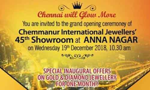 എസ്.ആര് വിജയകുമാര് എം.പി, അണ്ണാ നഗര് എം.എല്.എ മോഹന്, മുന്മന്ത്രി ഗോകുല ഇന്ദിര, ആര് ഗണേഷ് എം.എല്.എ, ധാന്സി റാണി എന്നിവര് വിശിഷ്ടാതിഥികളായിരിക്കും. 916 സ്വര്ണ്ണാഭരണങ്ങളുടെയും ഡയമണ്ട് ആഭരണങ്ങളുടേയും അതിവിപുലമായ സ്റ്റോക്കും സെലക്ഷനുമായ് ഒരുക്കിയിട്ടുള്ള അത്യാധുനിക സൗകര്യങ്ങളോടുകൂടിയ ഷോറൂമില് അസുലഭമായ ഷോപ്പിംങ് അനുഭവവും അന്താരാഷ്ട്ര നിലവാരമുള്ള ഭൗതിക സൗകര്യങ്ങളുമാണ് ഉപഭോക്താക്കളെ കാത്തിരിക്കുന്നത്.