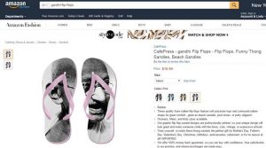 ന്യൂഡല്‍ഹി: ഇന്ത്യയുടെ രാഷ്ട്ര പിതാവ് മഹാത്മാ ഗാന്ധിയുടെ ചിത്രമുള്ള ചെരുപ്പ് വില്‍പനയ്ക്ക് വച്ച് പ്രശസ്ത ഓണ്‍ലൈന്‍ വ്യാപാര സ്ഥാപനം ആമസോണ്‍ വീണ്ടും വിവാദത്തില്‍. ഇന്ത്യന്‍ ദേശീയ പതാകയുടെ നിറത്തിലും രൂപത്തിലുമുള്ള ചവിട്ടി വില്‍പ്പനയ്ക്ക് വച്ചതിലൂടെ നേരത്തെ ആമസോണ്‍ വിവാദത്തിലകപ്പെട്ടിരുന്നു.