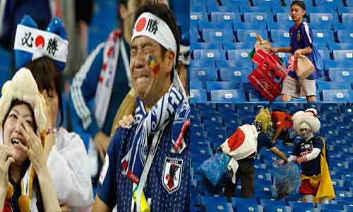 ജപ്പാന് ആരാധകരുടെ പ്രവര്ത്തിക്ക് ലോകത്തിന്റെ വിവിധ കോണുകളില് നിന്നും അഭിനന്ദന പ്രവാഹമാണ്. ഈ ലോകകപ്പിലെ ഏറ്റവും സുന്ദരമായ കാഴ്ചകളിലൊന്നായി അവരുടെ പ്രവൃത്തി മാറി. പരിസരം വൃത്തിയായി സൂക്ഷിക്കാന് ജപ്പാന് കുട്ടികളെ ചെറുപ്പത്തിലേ പരിശീലിപ്പിക്കുന്നു. ആ പരിശീലനം അവരുടെ ജീവിതചര്യയായി മാറുന്നതാണ് റഷ്യയില് കണ്ടത്.