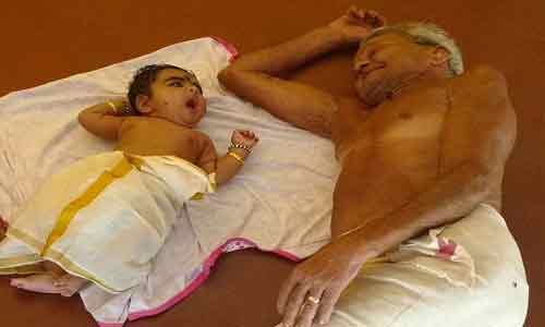(കിന്നാരം ചൊല്ലി; പൂരകുഞ്ഞിനോട് സല്ലപിക്കുന്ന അപ്പുടു വെളിച്ചപ്പാട്)