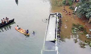 ടൂറിസ്റ്റ് ബസ് പുഴയിലേക്ക് മറിഞ്ഞ് അമ്മയും മകനുമടക്കം മൂന്നുപേര് മരിച്ചു