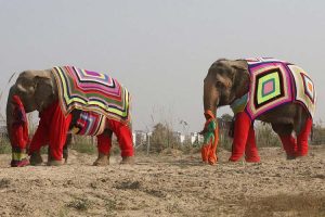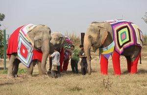 ഉത്തര്പ്രദേശ്: കൊടും തണുപ്പില് വലയുന്ന ആനകള്ക്ക് ആശ്വാസവുമായി ഒരു കൂട്ടം സ്നേഹവതികളായ സ്ത്രീകള് കമ്പിളിക്കുപ്പായവും പൈജാമയും തുന്നുന്നു. സ്വന്തം കൈകൊണ്ടാണ് ഗ്രാമവാസികളായ സ്ത്രീകള് ആനകള്ക്കായുള്ള കുപ്പായം തുന്നിയെടുക്കുന്നത്. ഉത്തര്പ്രദേശിലെ മഥുരയിലുള്ള ആന സംരക്ഷണ കേന്ദ്രത്തിലെ ആനകളെ തണുപ്പില് നിന്ന് രക്ഷിക്കാനായാണ് പ്രത്യേകം രൂപ കല്പ്പന ചെയ്ത വസ്ത്രങ്ങള് തയ്യാറാക്കുന്നത്.