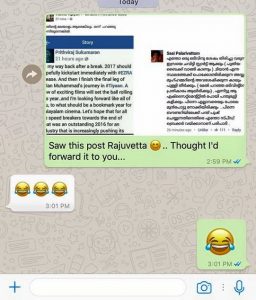 കൊച്ചി: പൃഥ്വിരാജിന്റെ ഇംഗ്ലീഷ് സ്റ്റാറ്റസ് വായിക്കാന് പാവപ്പെട്ട ആരാധകര്ക്ക് ഡിക്ഷണറി ഉപയോഗിക്കേണ്ടി വരും. അതിനാല് തന്നെ പൃഥ്വി ഇംഗ്ലീഷില് എന്ത് സ്റ്റാറ്റസ് ഇട്ടാലും കളയാക്കി കൊണ്ട് പുറകെ ട്രോളര്മാരുമെത്തും. പതിവുപോലെ കഴിഞ്ഞ ദിവസം പൃഥ്വി ഇട്ട ഇംഗ്ലീഷ് സ്റ്റാറ്റസിന്റെ തര്ജ്ജിമ ചെയ്ത മലയാളം കണ്ടാല് നമ്മള് ചിരിച്ചു മണ്ണുകപ്പും. സ്റ്റാറ്റസ് തര്ജ്ജിമ ചെയ്ത ട്രോള് പോസ്റ്റ് ചെയ്തത് കണ്ട സാക്ഷാല് പൃഥ്വി തന്നെ ഒന്നു ഞെട്ടി പിന്നെയൊരു പൊട്ടിച്ചിരിയും. തിരകഥാകൃത്തായ അഖില് പോള് ആണ് പൃഥ്വിക്ക് വാട്സാപ്പിലൂടെ ഈ ട്രോള് അയച്ചു കൊടുത്തത്.