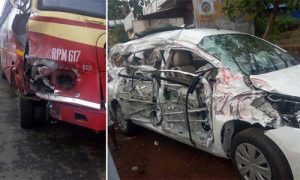 തീര്ത്ഥാടനം കഴിഞ്ഞ് മടങ്ങവെയായിരുന്നു അപകടം. അപകടത്തില് കാര് ഭാഗീഗമായി തകര്ന്നു.