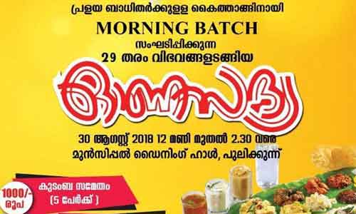 കാസര്കോട്: കേരളത്തിലെ പ്രളയ ബാധിത പ്രദേശങ്ങളില് ദുരിതാശ്വാസ പ്രവര്ത്തനത്തിനുള്ള ഫണ്ട് കണ്ടെത്തുന്നതിന്റെ ഭാഗമായി മോര്ണിംഗ് ബാച്ച് ഉളിയത്തടുക്ക ഓണ സദ്യ സംഘടിപ്പിക്കുന്നു. ഓഗസ്റ് 30നു കാസര്കോട് ടൗണ് ഹാളിനോട് ചേര്ന്നുള്ള ഡൈനിങ്ങ് ഹാളില് നടക്കുന്ന പരിപാടിയില് 1,000 പേര്ക്കാണ് ഓണ സദ്യ ഒരുക്കുന്നത്.