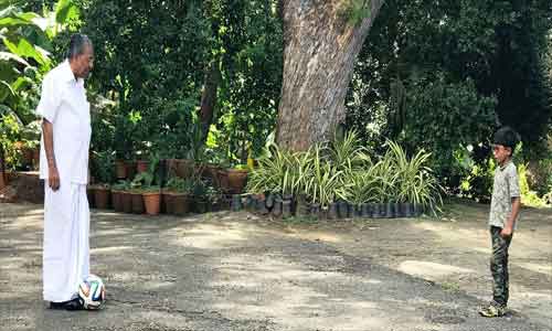 തിരുവനന്തപുരം: ലോകം ഫുട്ബോള് ആവേശത്തിലേക്ക് കുതിക്കുമ്പോള് നമ്മുടെ മുഖ്യമന്ത്രിയും ഫുട്ബോള് ആവേശത്തില്. മലയാളിയുടെ ഫുട്ബോള് ആവേശത്തിനൊപ്പം ആഹ്ലാദം പങ്കിടുകയാണ് പിണറായി വിജയനും. കൊച്ചു മകന് ഇഷാനൊപ്പം ഫുട്ബാള് തട്ടുന്ന ചിത്രവും കുറിപ്പും പങ്കുവച്ചാണ് പിണറായി ഫുട്ബോള് ആവേശം പങ്കുവച്ചത്. അതിരുകളില്ലാതെ മനുഷ്യനെ ഒന്നിപ്പിക്കുന്ന കായിക വിനോദമാണ് ഫുട്ബോളെന്നാണ് അദ്ദേഹത്തിന്റെ കുറിപ്പില് പറയുന്നു. ഫുട്ബോളിന് ദേശഭേദങ്ങളില്ലെന്നും തലമുറകളുടെ അനന്തരമില്ലെന്നും മറ്റു സ്വീകാര്യത ഏതുകളിക്കും ലഭിക്കില്ലെന്നും അദ്ദേഹം കുറിക്കുന്നു.