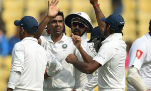 നാഗ്പൂര്: നാഗ്പൂര് ടെസ്റ്റില് ശ്രീലങ്കയ്ക്കെതിരെ ഇന്ത്യക്ക് മിന്നുന്ന വിജയം. ഇന്നിംഗ്സിനും 239 റണ്സിനുമാണ് ഇന്ത്യ ശ്രീലങ്കയെ തറപറ്റിച്ചത്. ഒരു ദിവസം ബാക്കി നില്ക്കെയുള്ള വിജയത്തോടെ ഇന്ത്യ ടെസ്റ്റ് പരമ്പരയില് മുന്നിലെത്തി. ഒന്നാം ഇന്നിംഗ്സ് ലീഡ് വഴങ്ങി രണ്ടാം ഇന്നിംഗ്സ് ബാറ്റിംഗിനിറങ്ങിയ ലങ്ക 166 റണ്സിന് ഓള് ഔട്ടാവുകയായിരുന്നു.