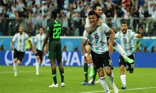 ഗബ്രിയേല് മെര്ക്കാഡോയുടെ ക്രോസിനെ മിന്നല് ഷോട്ടിലൂടെ മാര്ക്കസ് റോഹോ വലയിലെത്തിക്കുകയായിരുന്നു. പിന്നീടുള്ള സമത്ത് ഗോളകന്ന് നിന്നതോടെ 2-1ന്റെ ജയത്തോടെ ഗ്രൂപ്പ് ഡിയില് നിന്ന് അര്ജന്റീന പ്രീക്വാര്ട്ടറിലേക്ക് മുന്നേറി. മൂന്ന് കളിയില് നിന്ന് നാല് പോയിന്റുമായി ഗ്രൂപ്പില് രണ്ടാം സ്ഥാനക്കാരായാണ് അര്ജന്റീനയുടെ പ്രീക്വാര്ട്ടര് മുന്നേറ്റം. പ്രീക്വാര്ട്ടറില് ഗ്രൂപ്പ് സി ചാംപ്യന്മാരായ ഫ്രാന്സാണ് അര്ജന്റീനയ്ക്ക് എതിരാളികളായെത്തുന്നത്. മറ്റൊരു നിര്ണായക മല്സരത്തില് ഐസ് ലന്ഡിനെ തകര്ത്ത്് ഗ്രൂപ്പ് ഡി ചാംപ്യന്മാരായി ക്രൊയേഷ്യ പ്രീക്വാര്ട്ടറിലേക്ക് മുന്നേറി. ഒന്നിനെതിരേ രണ്ട് ഗോളുകള്ക്കായിരുന്നു ക്രൊയേഷ്യയുടെ ജയം. ഗോളൊഴിഞ്ഞ് നിന്ന ആദ്യ പകുതിക്ക് ശേഷം 53ാം മിനിറ്റില് ബഡേജിയും 90ാം മിനിറ്റില് പെരിസിക്കും ക്രൊയേഷ്യക്കായി ലക്ഷ്യം കണ്ടപ്പോള് 76ാം മിനിറ്റില് പെനല്റ്റിയിലൂടെ സിഗൂര്ഡ്സനാണ് ഐസ്ലന്ഡിന്റെ ആശ്വാസ ഗോള് കണ്ടെത്തിയത്. കളിച്ച മൂന്ന് മല്സരവും ജയിച്ച ക്രൊയേഷ്യ ഒമ്പത് പോയിന്റോടെയാണ് ഗ്രൂപ്പില് ചാംപ്യന്മാരായത്. പ്രീക്വാര്ട്ടറില് ഗ്രൂപ്പ് സി രണ്ടാം സ്ഥാനക്കാരായ ഡെന്മാര്ക്കാണ് ക്രൊയേഷ്യയുടെ എതിരാളികള്.