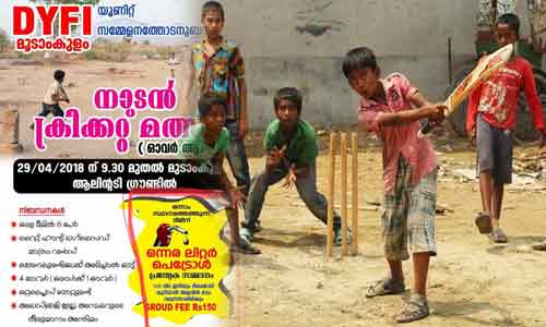 നാടന് ക്രിക്കറ്റ് മത്സരത്തില് ജയിച്ചാല് ഒന്നര ലിറ്റര് പെട്രോള് സമ്മാനം; വര്ധിച്ചു വരുന്ന പെട്രോള്, ഡീസല് വില വര്ധനക്കെതിരെയുള്ള ഡി.വൈ.എഫ്.ഐ യുടെ മല്സര പ്രതിഷേധം