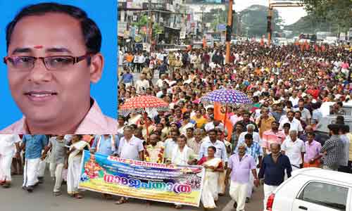 ഉദുമ: ശബരിമലയിലെ ക്ഷേത്രാചാരങ്ങള് സംരക്ഷിക്കണമെന്നാവശ്യപ്പെട്ട് സമാധാനപരമായി കീഴൂരില് നിന്ന് തൃക്കണ്ണാട്ടേക്ക് നാമജപ ഘോഷയാത്ര നടത്തിയവര്ക്കെതിരെ കള്ളക്കേസ് എടുത്ത പോലീസ് നടപടി അംഗീകരിക്കാനാവില്ലെന്ന് ബി.ജെ.പി ജില്ലാ പ്രസിഡണ്ട് കെ.ശ്രീകാന്ത് പറഞ്ഞു. ഹൈന്ദവ വിശ്വാസികള് നടത്തുന്ന നാമജപ യാത്രകള്ക്കെതിരെ കള്ള കേസെടുത്ത് അവരെ പീഡിപ്പിക്കാനാണ് പോലീസ് നീക്കമെന്നും. ഇതിനെതിരെ ശക്തമായി തന്നെ പ്രതിഷേധിക്കുമെന്ന് ശ്രീകാന്ത് വ്യക്തമാക്കി.