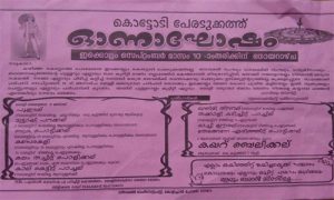 അതെ, ഓണം കാണാത്തവർ/ ആഘോഷിക്കാൻ നിങ്ങൾ കാസർകോട്ടേക്ക് വാ എന്നുതന്നെയാണ് കാസര്ഗോഡ് ജില്ലയിലെ കൊട്ടോടി പേരടുക്ക ഗ്രാമം പറയുന്നത്. ജീവിതരീതിയും നിലവാരവും കാലത്തിനൊപ്പം മാറിയപ്പോൾ തങ്ങളുടെ സത്വം തിരികെപിടിക്കാൻ ഒരുങ്ങുകയാണ് ഈ ഗ്രാമത്തിലുള്ളവർ. അതിനുള്ള ഉത്തമതെളിവാണ് ഈ വര്ഷം ഓണം ആഘോഷങ്ങളുമായി ബന്ധപ്പെട്ട് പേരടുക്ക ഗ്രാമത്തിലെ ഓണാഘോഷ സംഘാടകർ പുറത്തിറക്കിയ നോട്ടീസ്. തങ്ങളുടെ സ്വന്തമായ കാസ്രോട് സ്ലാങ്ങ് ആണ് നോട്ടീസില് മുഴുവന് ഉപയോഗിച്ചിരിക്കുന്നത്.