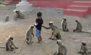പതിനെട്ട് മാസം പ്രായമായ ഈ കുട്ടിയും കുരങ്ങുകളും തമ്മിലുള്ള സൗഹൃദം കണ്ടാല്‍ ആരും അല്‍ഭുതപ്പെട്ടുപോകും; വിഡിയോ കാണാം