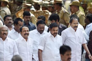 ചെന്നൈ: രാഷ്ട്രീയ പ്രതിസന്ധിക്ക് ശേഷം തമിഴ്നാടിന്റെ മുഖ്യമന്ത്രിയായി എടപ്പാടി പളനിസാമി സത്യപ്രതിജ്ഞ ചെയ്തു. ജയലളിതയുടെ മരണത്തിനു ശേഷം പ്രതിസന്ധിയിലായിരുന്ന തമിഴ്നാട് രാഷ്ട്രീയത്തില് നിര്ണായക തീരുമാനമെടുത്ത് ഗര്ണര് പളനി സാമിയെ മുഖ്യമന്ത്രിയാകാന് ക്ഷണിക്കുകയായിരുന്നു. ഇനി 17 വകുപ്പുകളാണ് പളനിസാമി കൈകാര്യം ചെയ്യുന്നത്. പളനിസാമിക്കൊപ്പം 30 മന്ത്രിമാരും സത്യപ്രതിജ്ഞ ചെയ്തു. മന്ത്രി സഭയില് നിന്ന് പനീര്ശെല്വത്തെയും പാണ്ഡ്യനെയും ഒഴിവാക്കിയിരിക്കുകയാണ്.