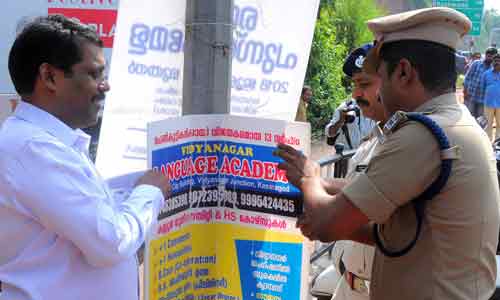 കാസര്കോട്: ഹൈക്കോടതി വിധിയെ തുടര്ന്ന് പാതയോരത്തും മറ്റു പൊതുയിടങ്ങളിലും ഗതാഗതത്തിനു തടസം സൃഷ്ടിക്കുന്നതും അനധികൃതമായും സ്ഥാപിച്ചിരിക്കുന്ന പരസ്യബോര്ഡുകള്, ഹോര്ഡിംഗുകള്, ഫ്ളെക്സുകള് എന്നിവ ജില്ലാ ഭരണകൂടത്തിന്റെ നേതൃത്വത്തില് നീക്കം ചെയ്തുതുടങ്ങി. ജില്ലാ കലക്ടര് ഡോ.ഡി.സജിത്ത്ബാബു, ജില്ലാപോലീസ് മേധാവി ഡോ.എ.ശ്രീനിവാസ് എന്നിവരുടെ നേതൃത്വത്തില് പഴയ പ്രസ് ക്ലബ് ജംഗ്ഷനില് നിന്നാണ് അനധികൃതബോര്ഡുകള് നീക്കം ചെയ്യല് ആരംഭിച്ചത്. ഹൈക്കോടതി വിധിയുടെ പശ്ചാത്തലത്തില് അഞ്ചുദിവസത്തിനകം ജില്ലയില് എല്ലായിടത്തുനിന്നും ഇവ നീക്കം ചെയ്യുമെന്ന് ജില്ലാ കലക്ടര് അറിയിച്ചു. ജില്ലയില് എല്ലായിടത്തും ഒരേ സമയത്താണ് നടപടികള് ആരംഭിച്ചത്. റവന്യു, പോലീസ്, പൊതുമരാമത്ത് എന്നീ വകുപ്പുകള് സംയുക്തമായാണ് ഇവ നീക്കം ചെയ്യുന്നത്. അനധികൃത പരസ്യബോര്ഡുകള് നീക്കം ചെയ്യുവാന് തദ്ദേശസ്വയം ഭരണ സ്ഥാപനങ്ങിലെ സെക്രട്ടറിമാര്ക്ക് ജില്ലാ ഭരണംകൂടം നേരത്തെ നിര്ദേശം നല്കിയിരുന്നു.