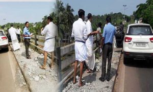സംഭവത്തില് പൊതുമരാമത്ത് വകുപ്പ് മന്ത്രി ജി സുധാകരനെ വിളിച്ച് പരാതി അറിയിച്ചപ്പോള് കരാറുകാരനെതിരെ സ്വമേധയാ കേസെടുക്കാന് മന്ത്രി കാസര്കോട് പോലിസിന് നിര്ദേശം നല്കുകയായിരുന്നു. ജില്ലാ കലക്ടറെ ഫോണില് കിട്ടാത്തതിനെ തുടര്ന്നാണ് മന്ത്രിയെ നേരിട്ട് പരാതി അറിയിച്ചത്. കഴിഞ്ഞ ദിവസം പുഴ സംരക്ഷണ സമിതി നടത്തിയ പ്രതിജ്ഞയ്ക്ക് ശേഷമാണ് സംഭവം നടക്കുന്നത്. ലോറിയിടിച്ചാണ് പാലത്തിന്റെ കൈവരി തകര്ന്നത്. ഇത് പുനസ്ഥാപിച്ചതിനെ തുടര്ന്ന് അവശിഷ്ടങ്ങള് നീക്കിയിരുന്നില്ല.